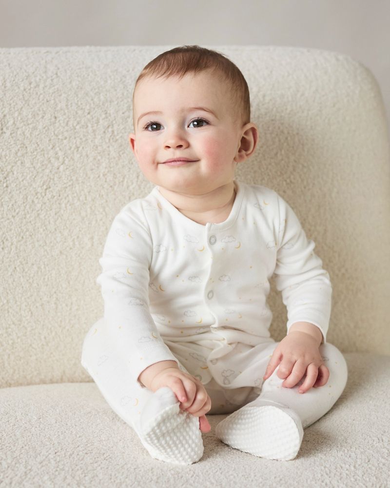 Cosy, comfy, and made from pure cotton, these adorable sleepsuits feature popper buttons from the collar down to the knees for easy changing. Each long-sleeved sleepsuit includes rollover cuffs that become mitts to prevent scratching. Look for the copper popper for easy fastenings.