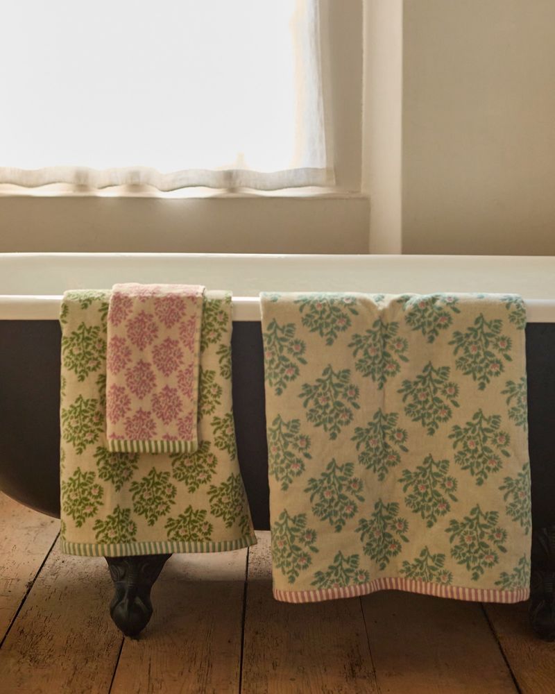 Showcasing a floral pattern paired with striped trims, this bath towel from Carolyn Donnelly is crafted from a sumptuously soft cotton. It instantly introduces style and character to any bathroom setting. Matching items available, sold separately. Brought to you by Irish designer Carolyn Donnelly, exclusively for Dunnes Stores.
