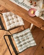 From Carolyn Donnelly, this pure cotton seat pad adds character to dining or kitchen chairs with its eclectic designs on the front and reverse. With soft padding, it offers both comfort and style, while the secure ties keep it neatly in place, perfect for everyday use. Brought to you by Irish designer Carolyn Donnelly, exclusively for Dunnes Stores.