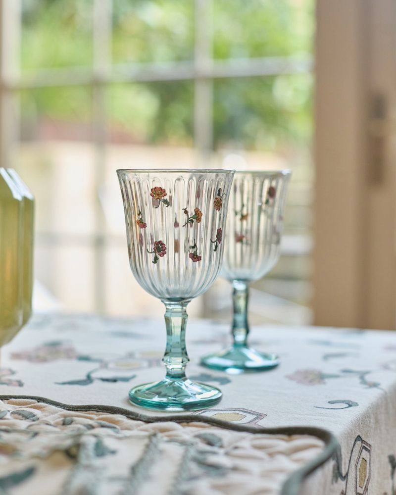 This wine glass from Carolyn Donnelly features a fine etching of a ditsy floral print, while the tinted stem adds a subtle hint of colour. Featuring a ribbed surface for subtle texture, it is perfect for serving drinks during special occasions. Brought to you by Irish designer Carolyn Donnelly, exclusively for Dunnes Stores.
