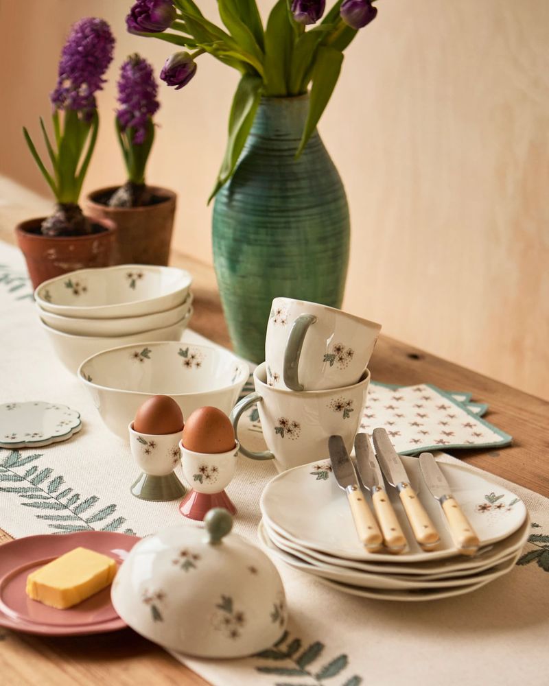 This butter dish features a soft pink plate with a white lid decorated in the designer’s eclectic floral print, topped with a green handle for easy lifting. It’s a charming addition to your kitchen or dining table that adds a splash of colour and style. Brought to you by Irish designer Carolyn Donnelly, exclusively for Dunnes Stores.