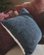 This lovely cushion features a soft chenille front and a neutral back with a hint of linen. It’s the perfect size for adding comfort and texture to your sofa or bed.