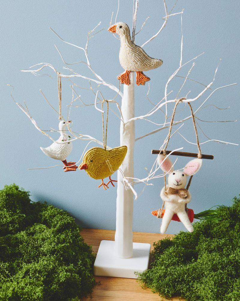 This decoration features a cute felt bunny sitting on a carrot swing. It’s perfect for hanging around the home or adding to your Easter tree display.