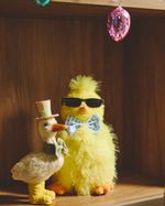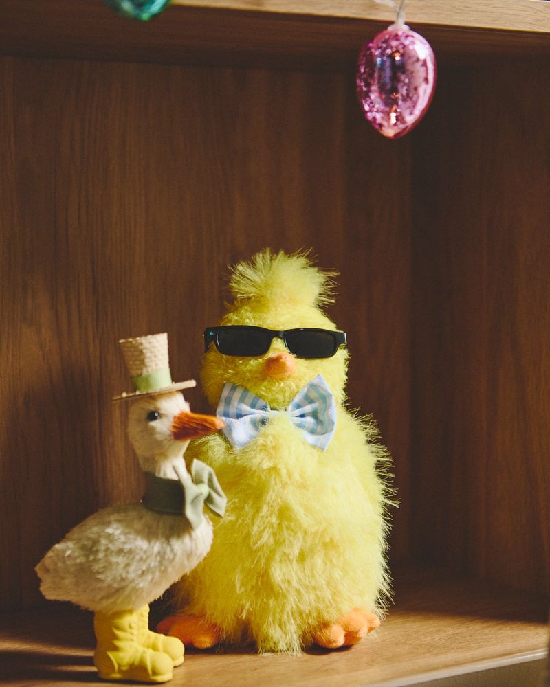 This goose decoration is a lovely addition to your Easter décor. Dressed in bright yellow wellies with a bow detail and a straw-style top hat, it adds a festive touch of character to your home.