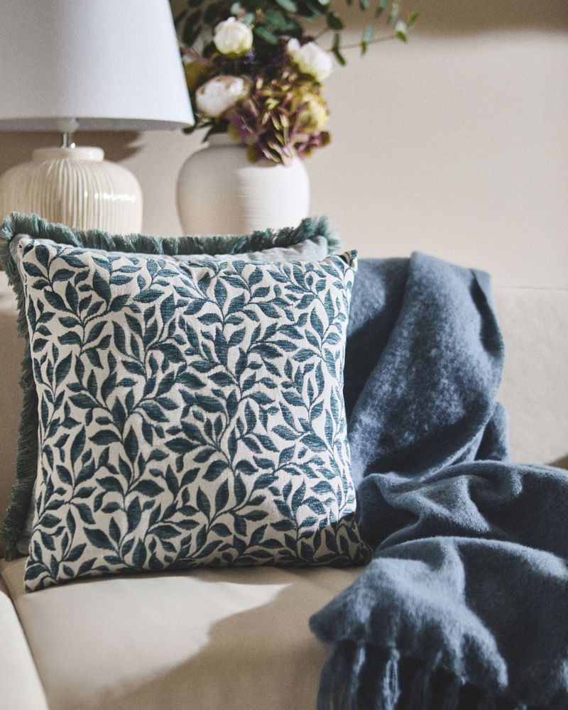 This cushion features a beautifully woven leaf pattern on one side, with a gently textured reverse with a hint of linen. Perfect for adding a touch of cosy sophistication and texture to sofas, beds, or armchairs.