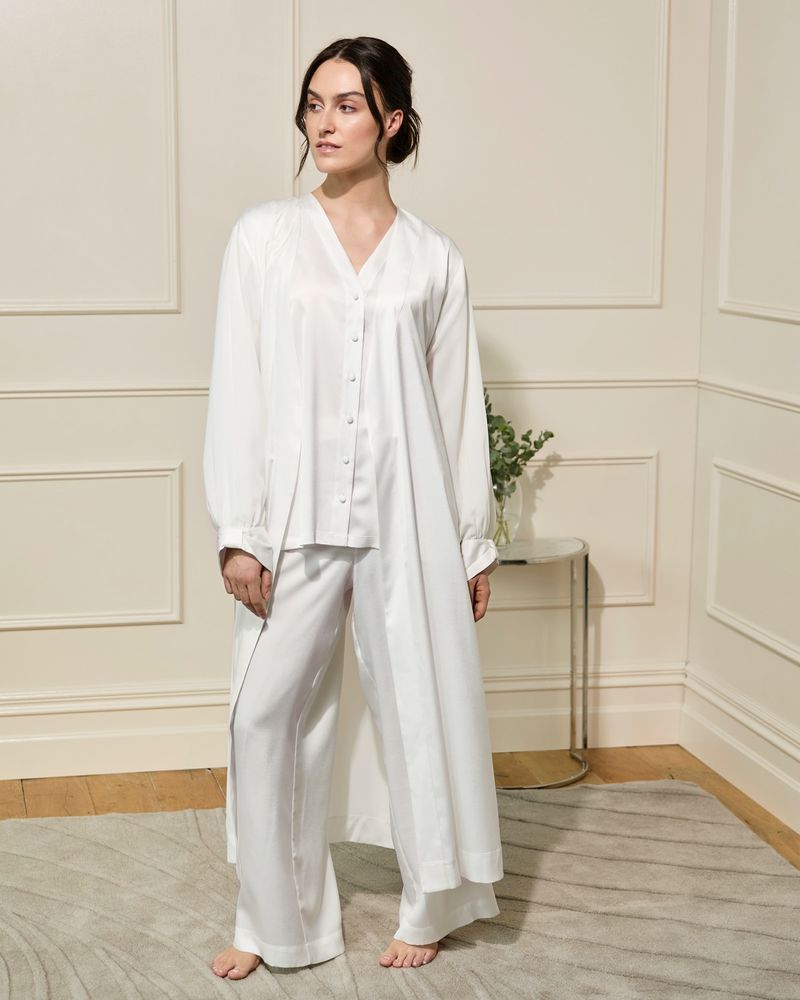 Make bedtime or lounge time feel extra special with these beautiful ivory pyjamas, finished with a distinctive bow cuff detail. Crafted from lightweight satin, they combine effortless style with luxurious comfort. An ideal gift for someone special. Francis Brennan the Collection is available exclusively at Dunnes Stores.
