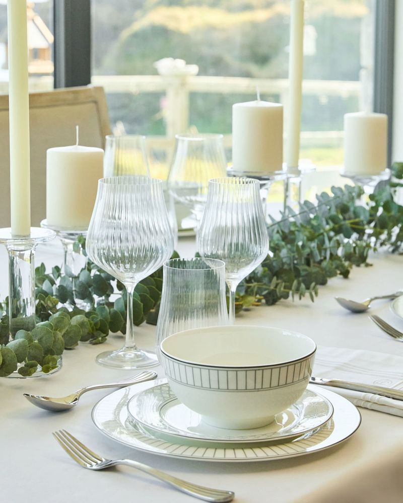Live a life less ordinary with the Clydagh collection. This beautiful, timeless set is crafted from bone china and decorated with a decadent grey pattern. Add a sense of occasion to that cup of tea, lazy lunch, or family feast. Enjoy the complete set or individual pieces to add a touch of luxury to your home. Cyldagh is both microwave and dishwasher safe. Francis Brennan the Collection is available exclusively at Dunnes Stores.