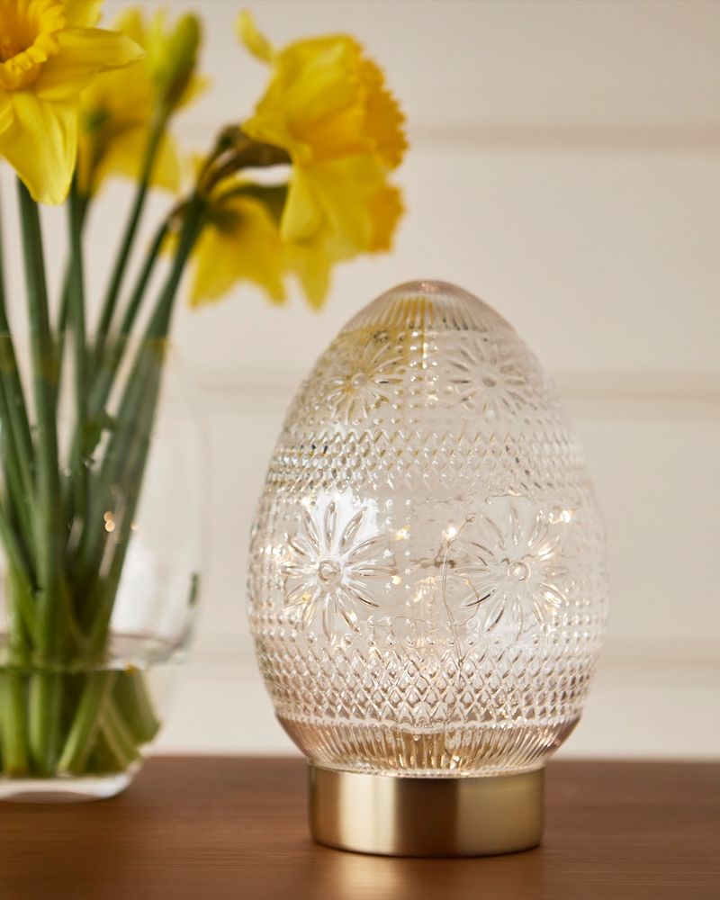 Add an elegant seasonal touch to your home with this beautifully detailed Glass LED Egg. It brings the joys of spring indoors and is perfect for a windowsill, entrance, mantel or dining table, emitting a soft, warm glow. Francis Brennan the Collection is available exclusively at Dunnes Stores.