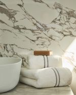 My luxurious towels are made in Portugal using pure cotton. They are woven using a zero twist yarn which makes them super absorbent, as well as being incredibly plush and sumptuously soft to the touch. The towels are finished with a classic double stripe embroidery detail which coordinates with our Double Stripe bedding range. Products sold separately. Francis Brennan the Collection is available exclusively at Dunnes Stores.