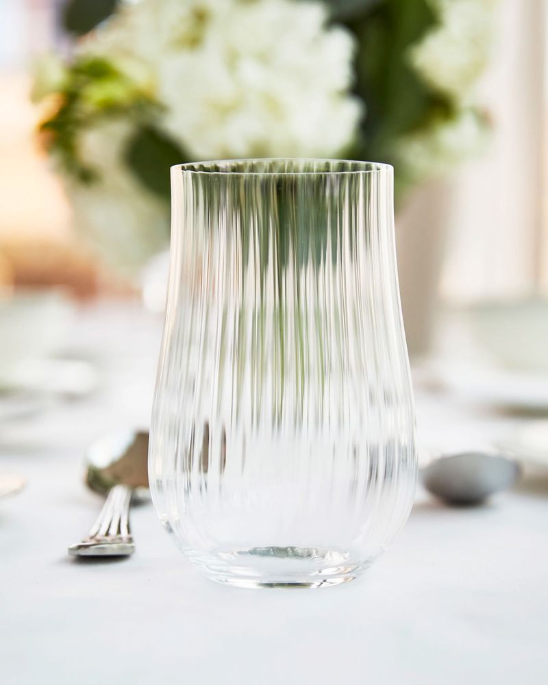 This rippled water glass has been designed with a slight narrowing towards the top. Classically chic, it will look elegant on any dining table. Matching items available: sold separately. Francis Brennan the Collection is available exclusively at Dunnes Stores.