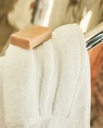 White rope border towel 100% cotton 550 gsm Made in Portugal Care Wash at 40 degrees Wash before use Wash with similar colours Fabric conditioner reduces absorbency Do not soak or bleach