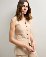This longline waistcoat adds a touch of timeless tailoring to your wardrobe. Featuring a smart button-through front and welt pockets for a polished look, it is finished with a clean, collarless neckline for a modern look. Matching trousers available; sold separately. Gallery is available exclusively at Dunnes Stores.