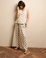 Crafted with a hint of linen, this waistcoat offers a lightweight, breathable feel. Designed in a flattering regular fit, it features a peplum detail that softly flares from the waist, creating a feminine silhouette. The all-over polka dot print adds a playful yet timeless touch to the piece. Matching items available; sold separately. Gallery is available exclusively at Dunnes Stores.