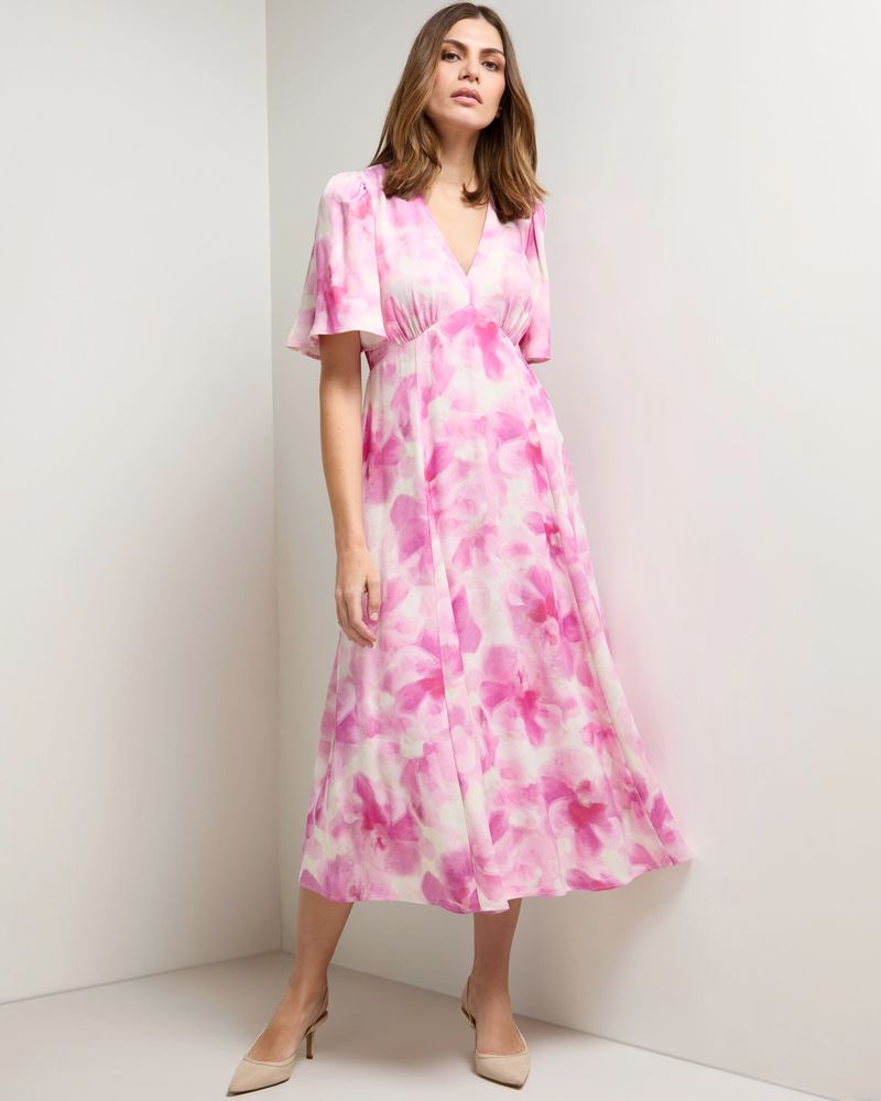 An effortlessly elegant addition to your occasion wardrobe, this satin dress from Gallery features an all-over floral pattern in a delicate, watercolour-inspired design. A flattering v-neckline and flutter sleeves add a romantic, feminine touch. Gallery is available exclusively at Dunnes Stores.
