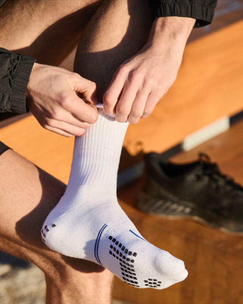 Made from a cotton-rich blend, these grip socks feature gentle compression to keep them securely in place. With breathable fabric, arch support, smooth toe seams, a cushioned footbed, and ergonomic grippers, they provide comfort and stability during any activity. Pack of 2.