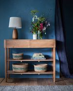 This smooth mango wood console table brings a warm, natural feel to any room. With two spacious drawers and generous open shelving, it offers both storage and display space. Its natural finish and balanced proportions make it an inviting choice for hallways or living areas, allowing you to style it with ease. Brought to you by Irish designer Helen James, exclusively for Dunnes Stores.