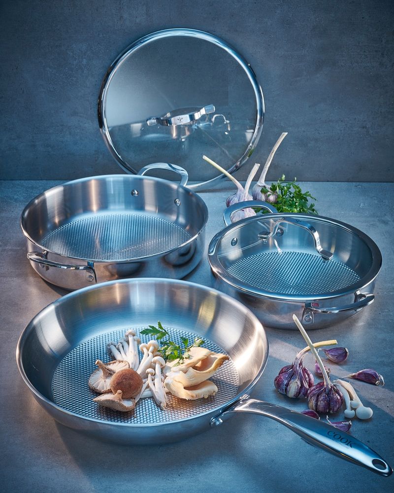 This skillet from Neven Maguire is made from a high performance stainless steel with superior heat-conductivity and retention. It is designed with an embossed base that creates individual pockets for oils and flavours to be captured and cooked into the foods. Two sizes available; sold separately. Brought to you by Neven Maguire, exclusively for Dunnes Stores.