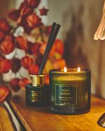 Housed in a ribbed container, this candle will bring some art deco elegance to your interiors, while its scent will elevate the pleasant ambiance of your home. Burn time: More than 40 hours. Multiple scents available; sold separately.