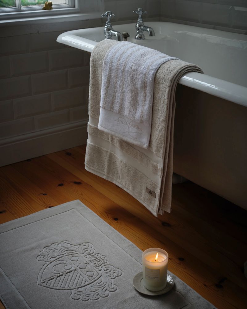 From Paul Costelloe, this hand towel comes in a classic striped pattern with the designer's signature on the bottom. A luxurious touch for your bathing experience. Matching items available; sold separately. This towel’s GSM is 650. GSM is Grams per Square Metre which is the standard measurement for the weight and quality of towels. It usually ranges from 300 to 900. The higher the GSM, the heavier the towel. Brought to you by Irish designer Paul Costelloe, exclusively for Dunnes Stores.