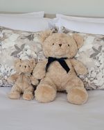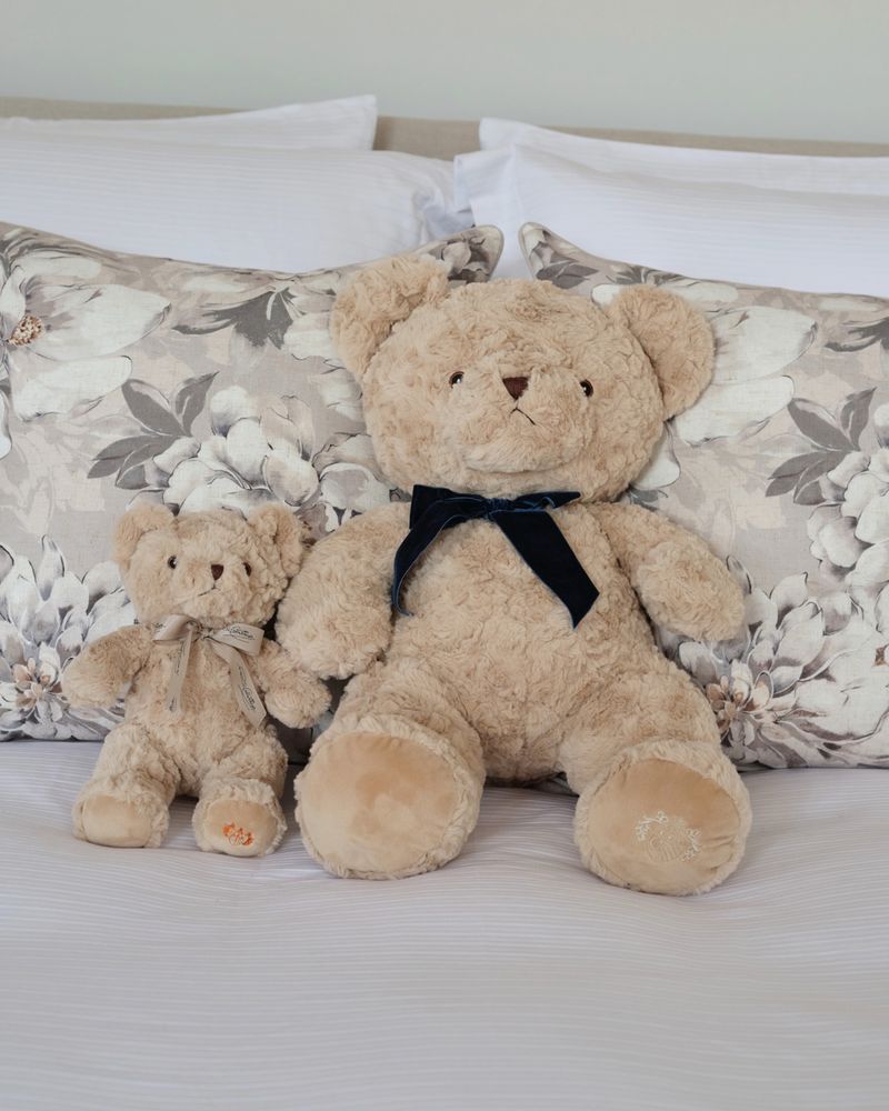 The large bear from Paul Costelloe is made from luxuriously soft fabric and wears a neat bow. With the designer's crest embroidered on his foot, he adds warmth, character, and personality to any room. Brought to you by Irish designer Paul Costelloe, exclusively for Dunnes Stores.