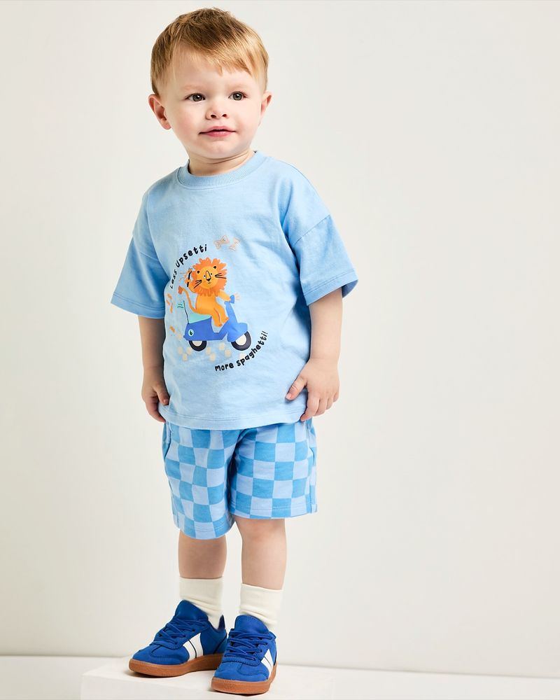 These cotton-rich shorts feature a classic print, two handy side pockets, and a soft elasticated waistband with a faux drawstring detail. Perfect for little ones to move and play comfortably.