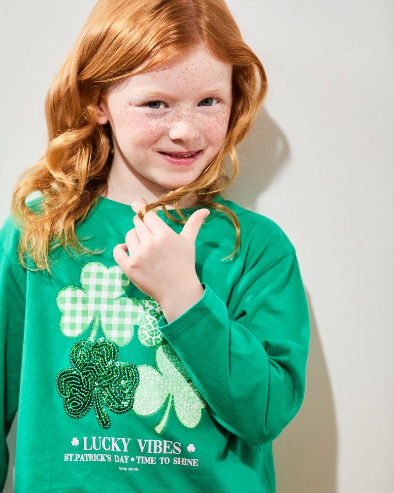 KidsGirlsTops and T-shirtsSequin Shamrock Long Sleeve Top (3-14 Years)