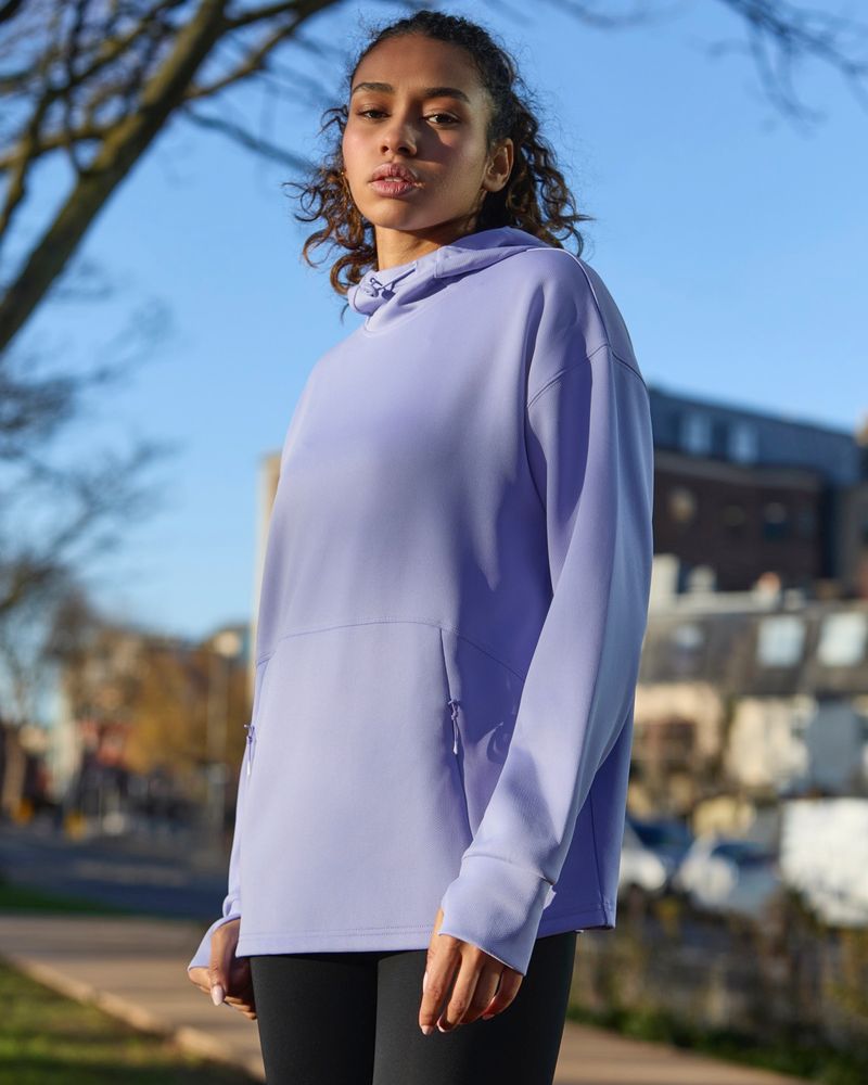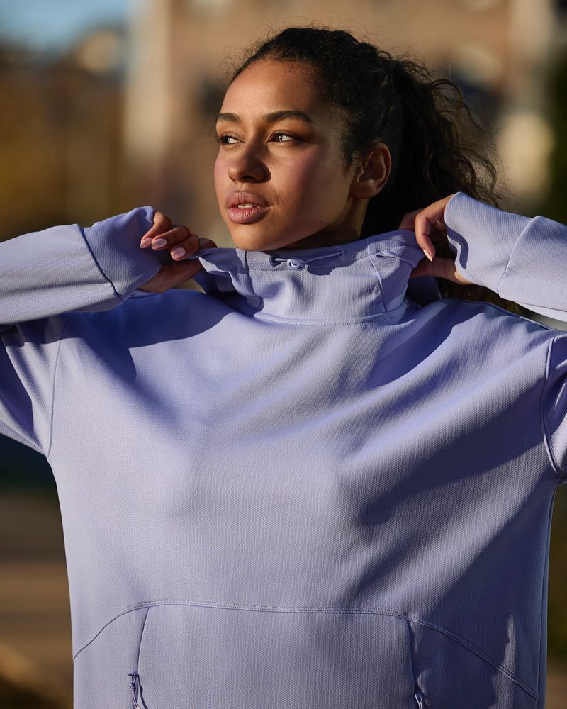 In a soft lavender shade with an adjustable hood and zip pockets, this hoodie adds a pop of colour to your everyday style. Its breathable fabric and relaxed fit make it perfect for everything from coffee runs to workouts.