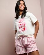 This cotton pyjama set includes a short-sleeved, boxy-fit top adorned with a vibrant graphic print, paired with coordinating shorts accented by delicate ruffle trims. Lightweight and breezy, it’s the perfect choice for warm nights.